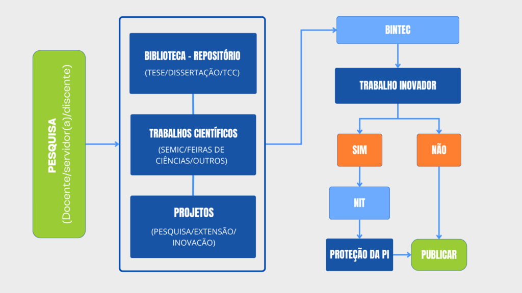 O projeto “Busca por Inovação Tecnológica” (BINTEC) é uma iniciativa estratégica do Núcleo de Inovação Tecnológica (NIT) da Universidade Federal Rural do Semi-Árido (UFERSA) que visa identificar, proteger e valorizar o potencial inovador das produções acadêmicas geradas na instituição. O BINTEC atua como um catalisador para a cultura de inovação na UFERSA, promovendo o mapeamento e a análise de pesquisas e desenvolvimentos com vistas à geração de patentes, programas de computadores, marcas e outras formas de proteção à propriedade intelectual.