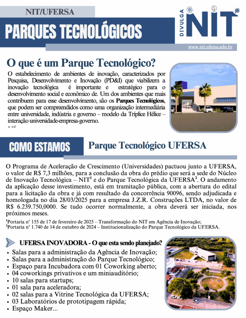 Divulga NIT temas de inovação e tecnologia Divulga NIT 2025 2024 Janeiro Fevereiro Março Abril Maio Junho Julho Agosto Setembro Outubro Novembro Novembro Dezembro 7 de novembro de 2024. Visualizações: 706. Última modificação: 03/11/2025 19:00:02